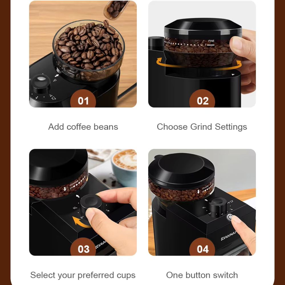 Elevate your coffee experience with the Kavax® Air Burr Coffee Grinder, designed to deliver precision and flavor in every cup. Whether you're brewing a rich espresso, a smooth pour-over, or a robust French press, this grinder ensures consistent and even grinding, bringing out the full flavor of your beans